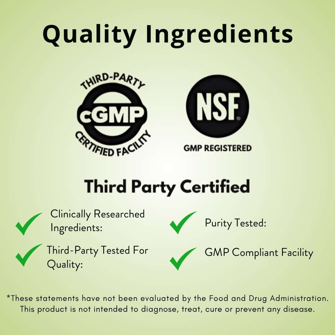 Our supplements are manufactured in facilities that are NSF® Certified for Good Manufacturing Practices (GMP). This certification ensures that the highest standards for equipment, procedures, and quality control are followed, in full compliance with the U.S. FDA’s 21 CFR Part 111 regulations for dietary supplements.