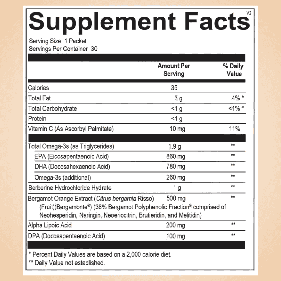 ✓ Essential Omega 3s, Berberine, Bergamot, Alpha Lipoic Acid, DPA