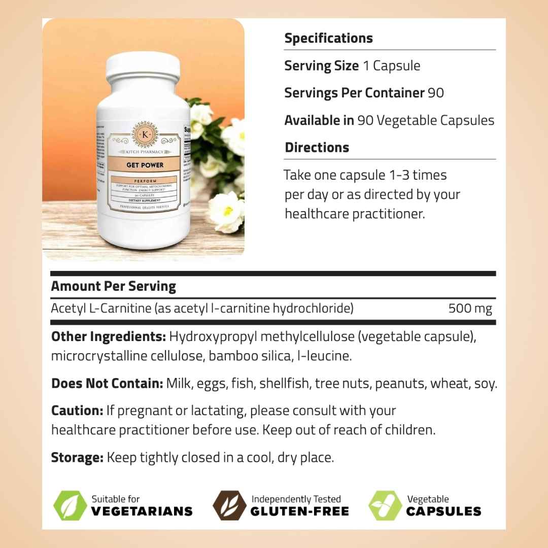 Get Power features Acetyl L-Carnitine, a highly bioavailable form of L-carnitine that supports cellular energy production and mitochondrial function.* This premium formula provides targeted support for metabolic performance, brain health, and overall vitality.*