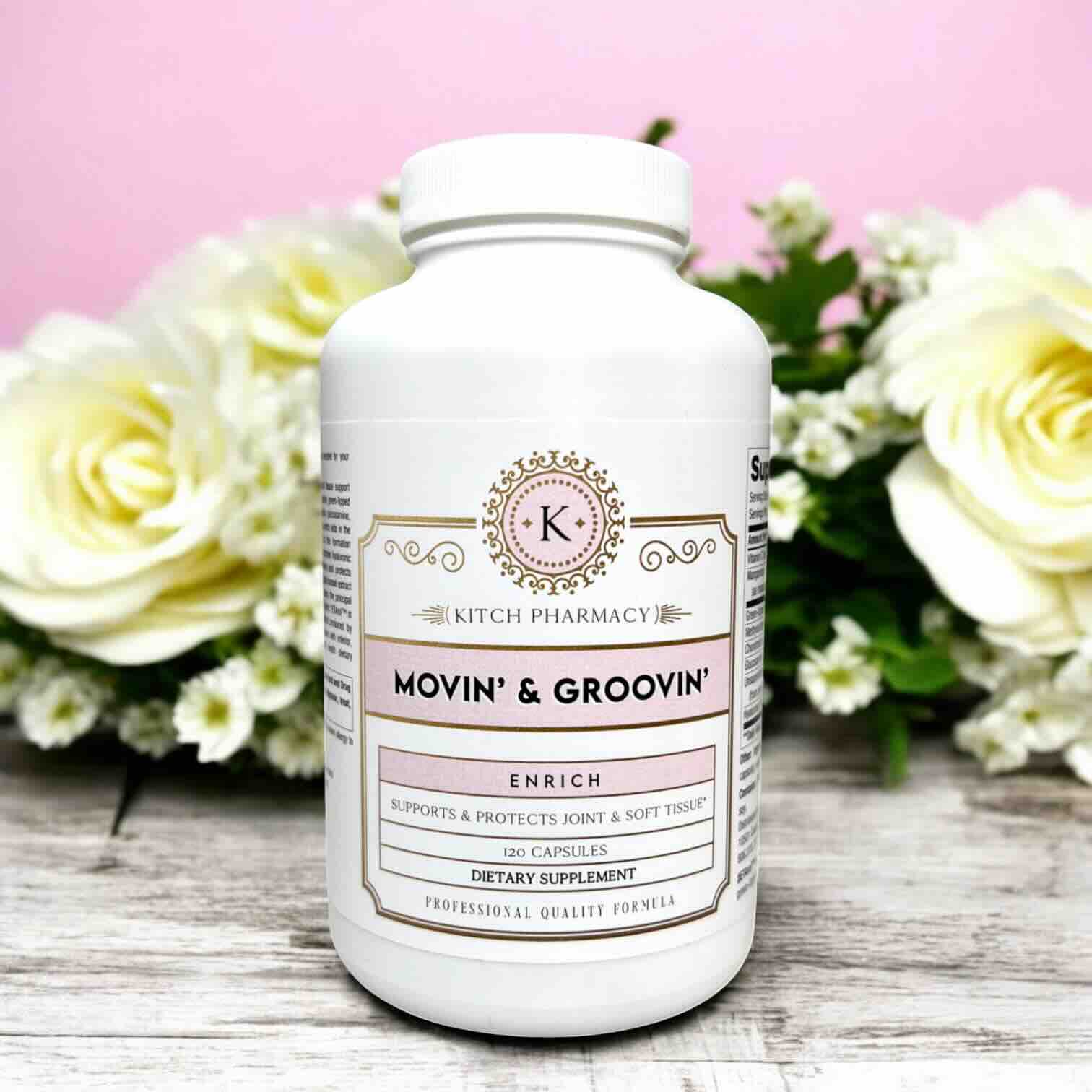 Movin’ & Groovin’ is a comprehensive formula designed to help maintain healthy joint mobility, comfort, and flexibility.* It features ETArol™, a premium whole green-lipped mussel extract from New Zealand, along with glucosamine, chondroitin sulfate, MSM, manganese, and hyaluronic acid—nutrients known to help support joint and connective-tissue health.*