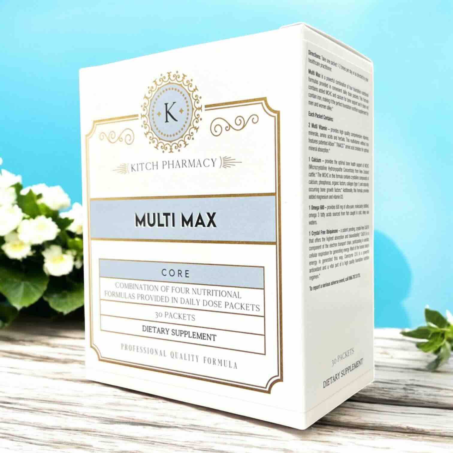 Multi-Max is a pharmacist-formulated daily packet that combines essential vitamins, minerals, and nutrients for convenient foundational nutrition. Each packet includes a balanced blend of multivitamins, minerals, omega-3 fatty acids, CoQ10, and microcrystalline hydroxyapatite (MCHC) for comprehensive daily nourishment. This formula may support balanced nutrition and help maintain overall wellness for both men and women. *