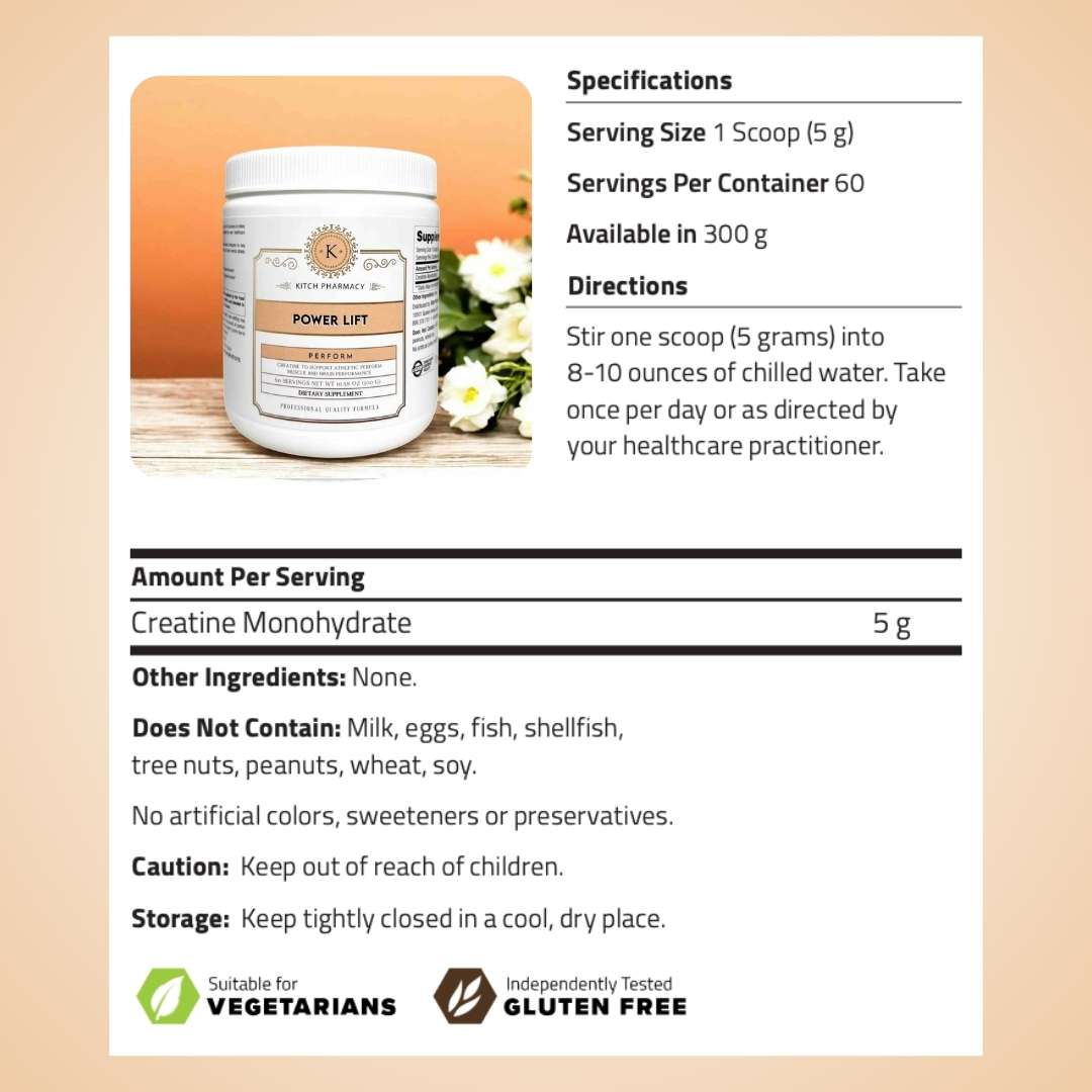 Power Lift features 100% pure Creatine Monohydrate, a premium-grade, clinically studied compound that supports muscle strength, power output, and athletic performance.* This formula is designed for athletes, fitness enthusiasts, and individuals seeking to improve energy efficiency during high-intensity exercise.*