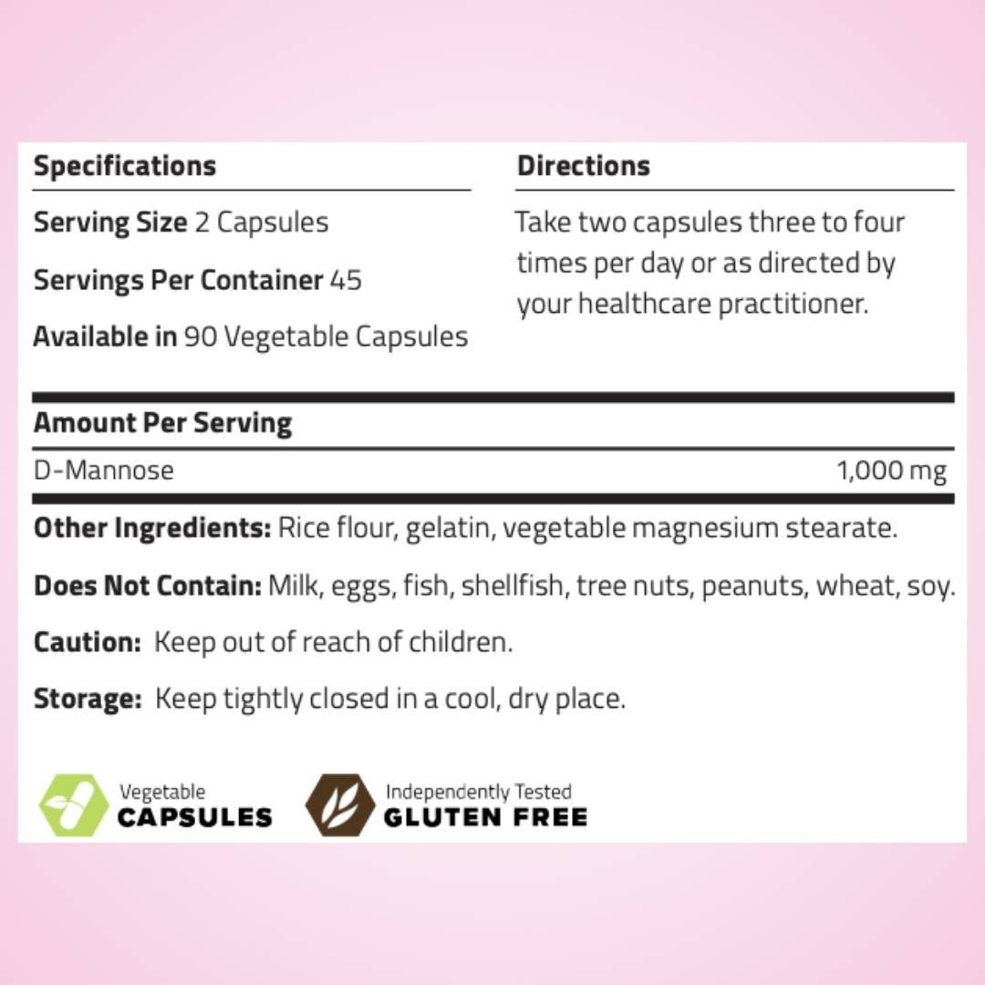 ✓ Features D-Mannose, a naturally occurring simple sugar derived from fruit *